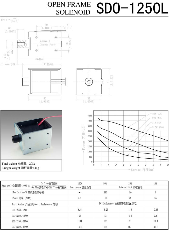 詳細信息 SDO-1250L-06A,SDO-1250L-12A,SDO-1250L-24A,SDO-1250L-48A,直動電磁鐵