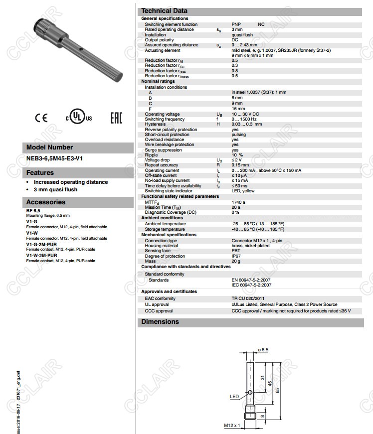 NEB3-6,5M45-E3-V1,電感式接近開關(guān)