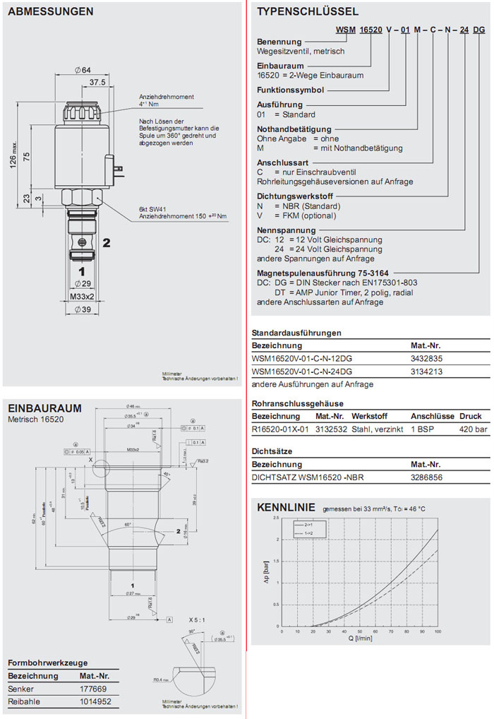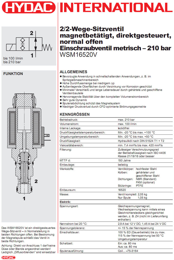 WSM16520V-01-C-N-12DG,WSM16520V-01-C-N-24DG,HYDAC電磁2/2方向座閥