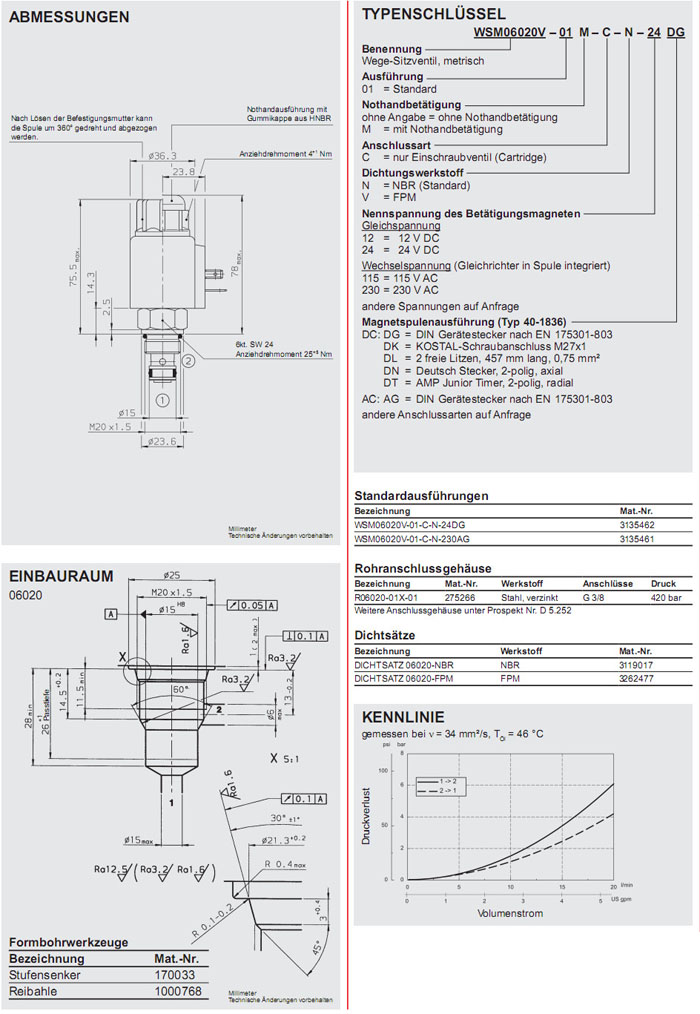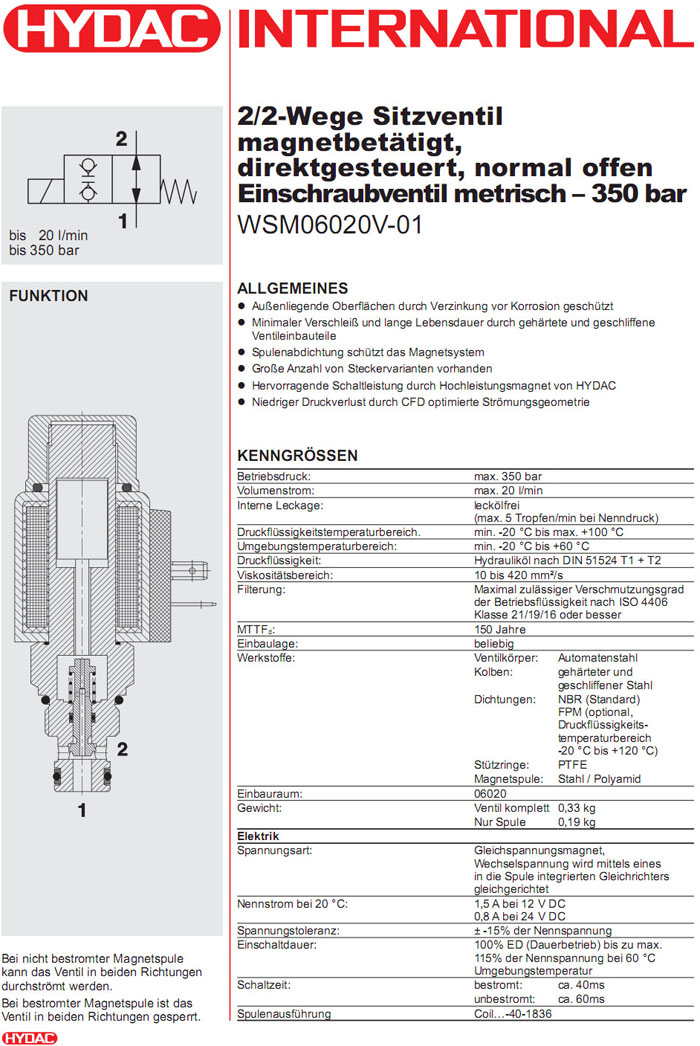 WSM06020V-01-C-N-24DG,WSM06020V-01-C-N-230AG,HYDAC電磁2/2方向座閥