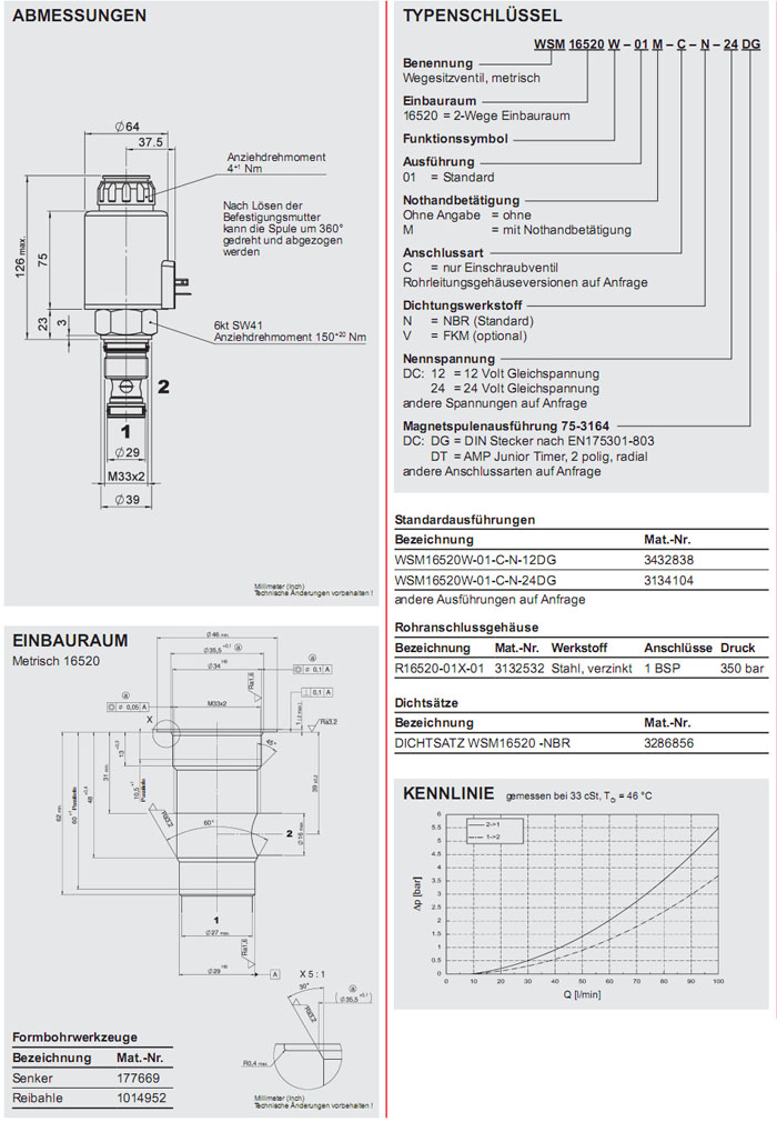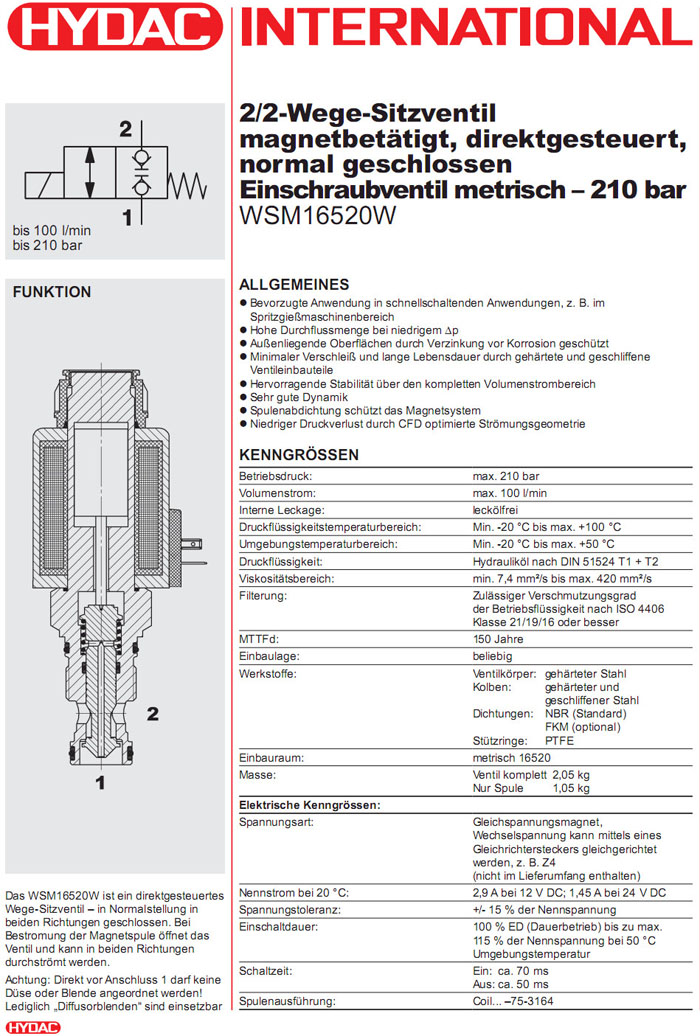 WSM16520W-01-C-N-12DG,WSM16520W-01-C-N-24DG,HYDAC電磁2/2方向座閥