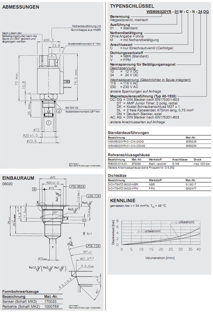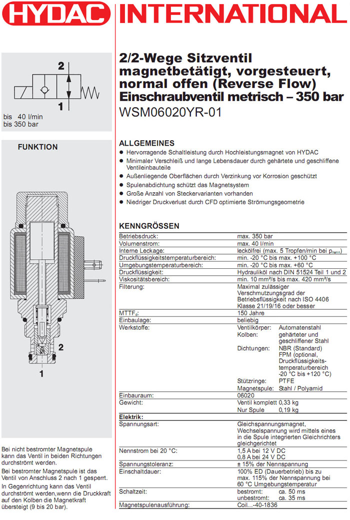WSM06020YR-01-C-N-24DG,WSM06020YR-01-C-N-230AG,HYDAC電磁2/2方向座閥