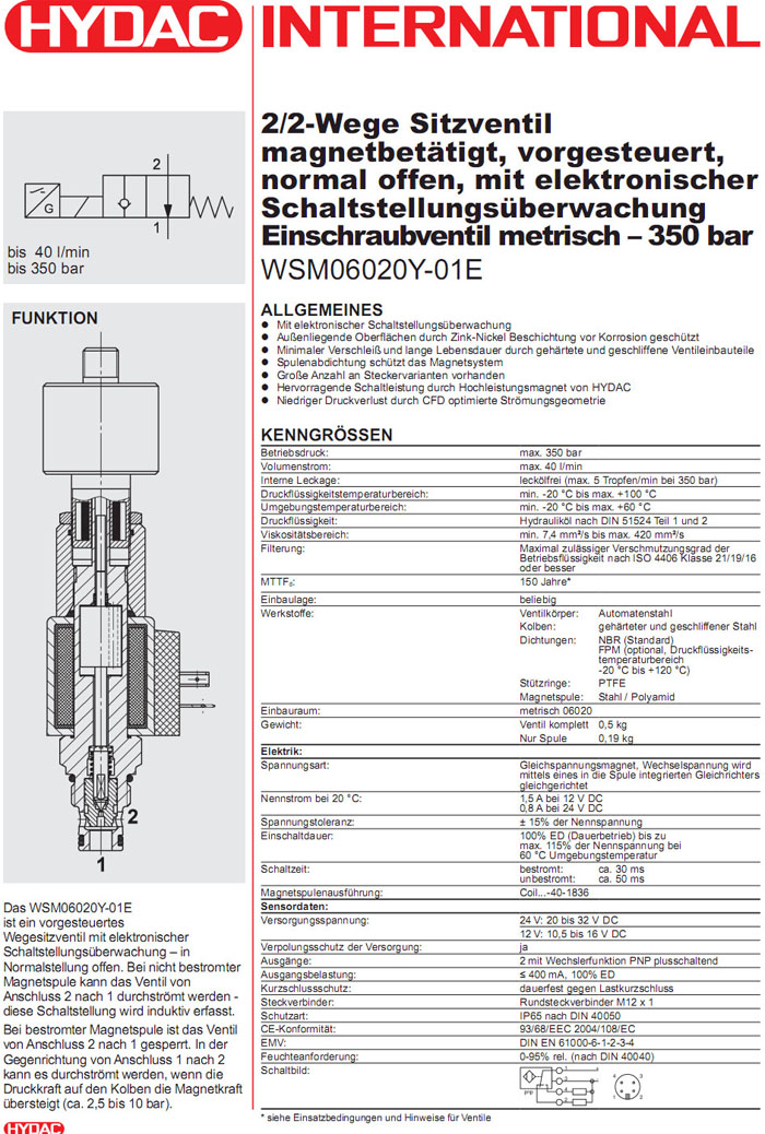 WSM06020Y-01E-C-N-12DG,WSM06020Y-01E-C-N-24DG,HYDAC電磁2/2方向座閥
