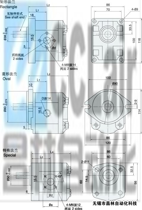 ⑤ 安裝形式 A: 菱形法蘭 C: 矩形法蘭 T: 特殊法蘭