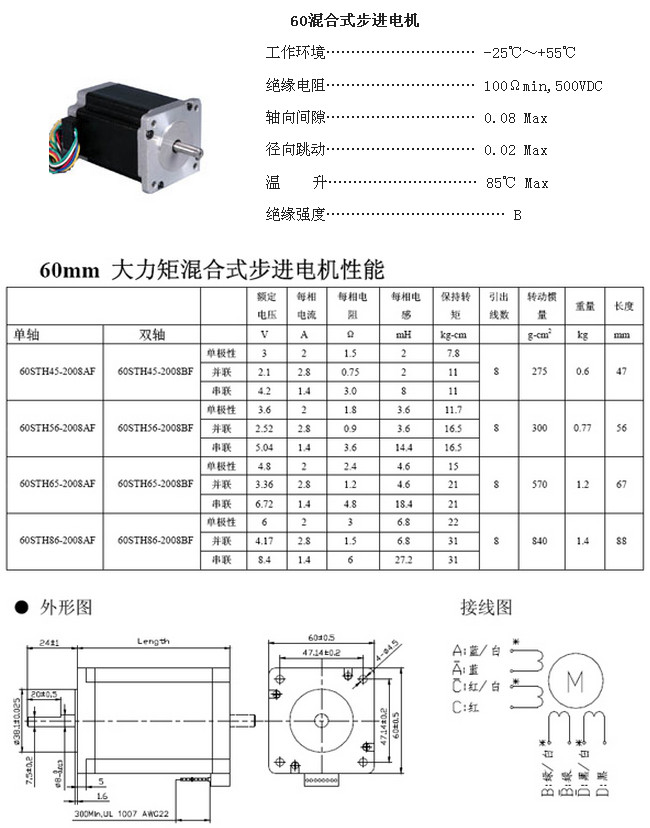 60STH45-200SAF,60STH56-200SAF,60STH65-200SBF,60STH86-200SBF,60混合式步進電機