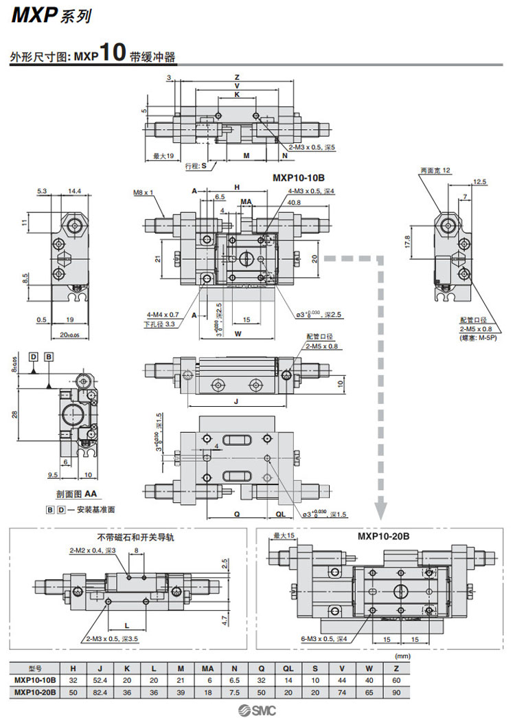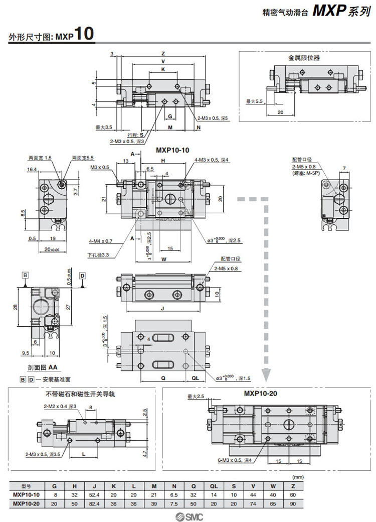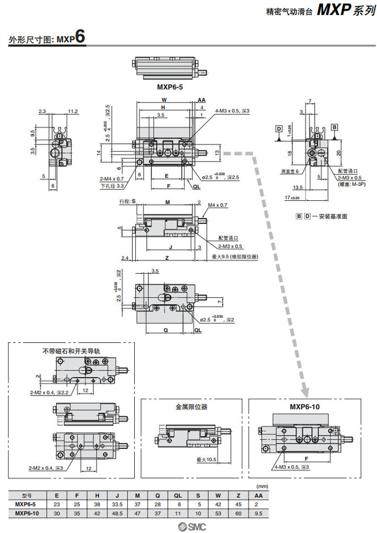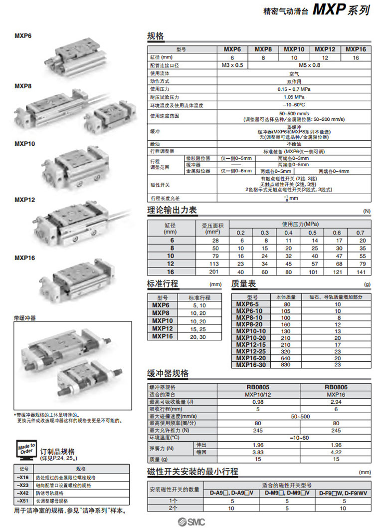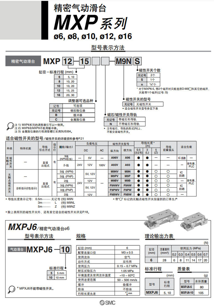 MXP6-5,MXP8-10,MXP10-10,MXP12-15,MXP16-20,MXPJ6-5,MXP6-10,MXP8-20,SMC精密氣動滑臺氣缸