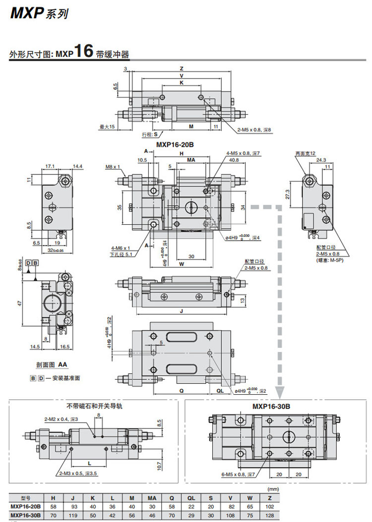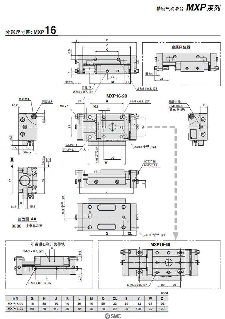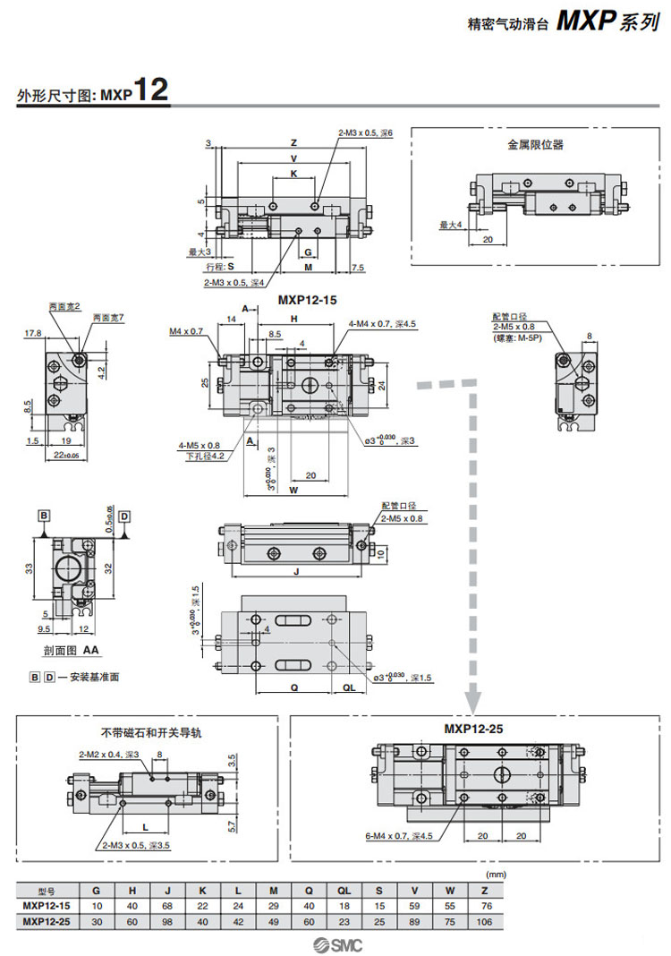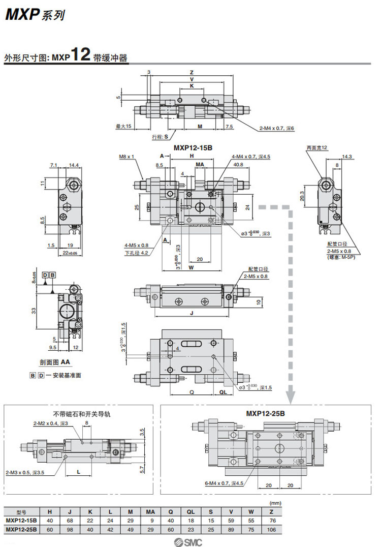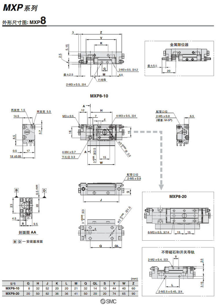 MXP6-5,MXP8-10,MXP10-10,MXP12-15,MXP16-20,MXPJ6-5,MXP6-10,MXP8-20,SMC精密氣動滑臺氣缸
