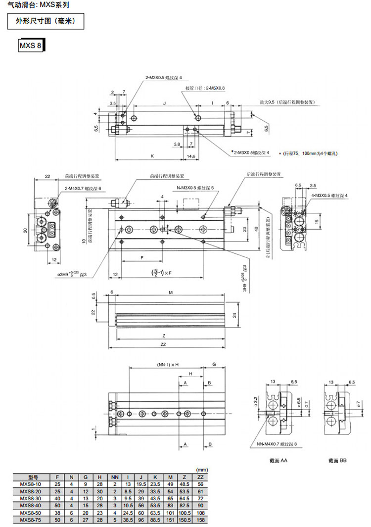 MXS6-10,MXS8-10,MXS12-10,MXS16-10,MXS20-10,MXS25-10,MXS6-20,MXS8-20,MXS12-20,SMC氣動滑臺氣缸