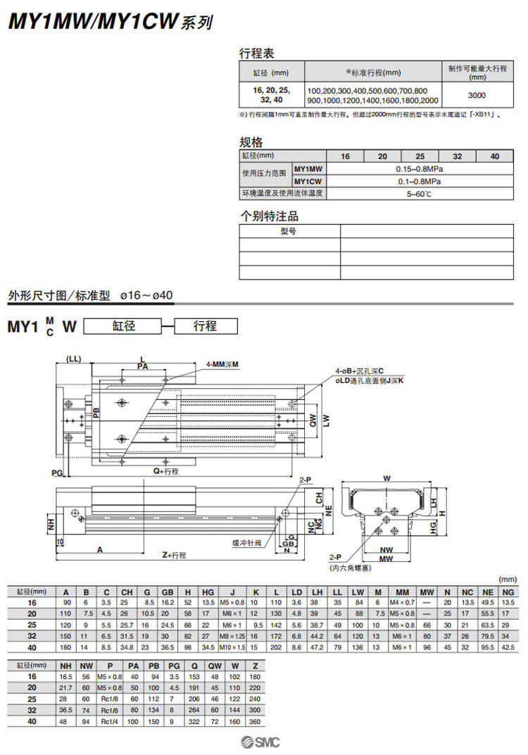 型號: MY1MW16,MY1MW20,MY1MW25,MY1MW32,MY1MW40,MY1CW16,MY1CW20,MY1CW25,MY1CW32,MY1CW40,MY1MW16-100