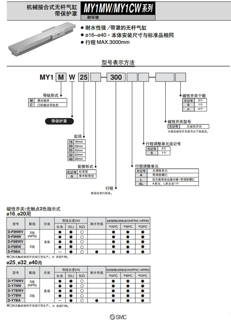 MY1CW40-1000,MY1CW40-1200,MY1CW40-1400,MY1CW40-1600,MY1CW40-1800,MY1CW40-2000,