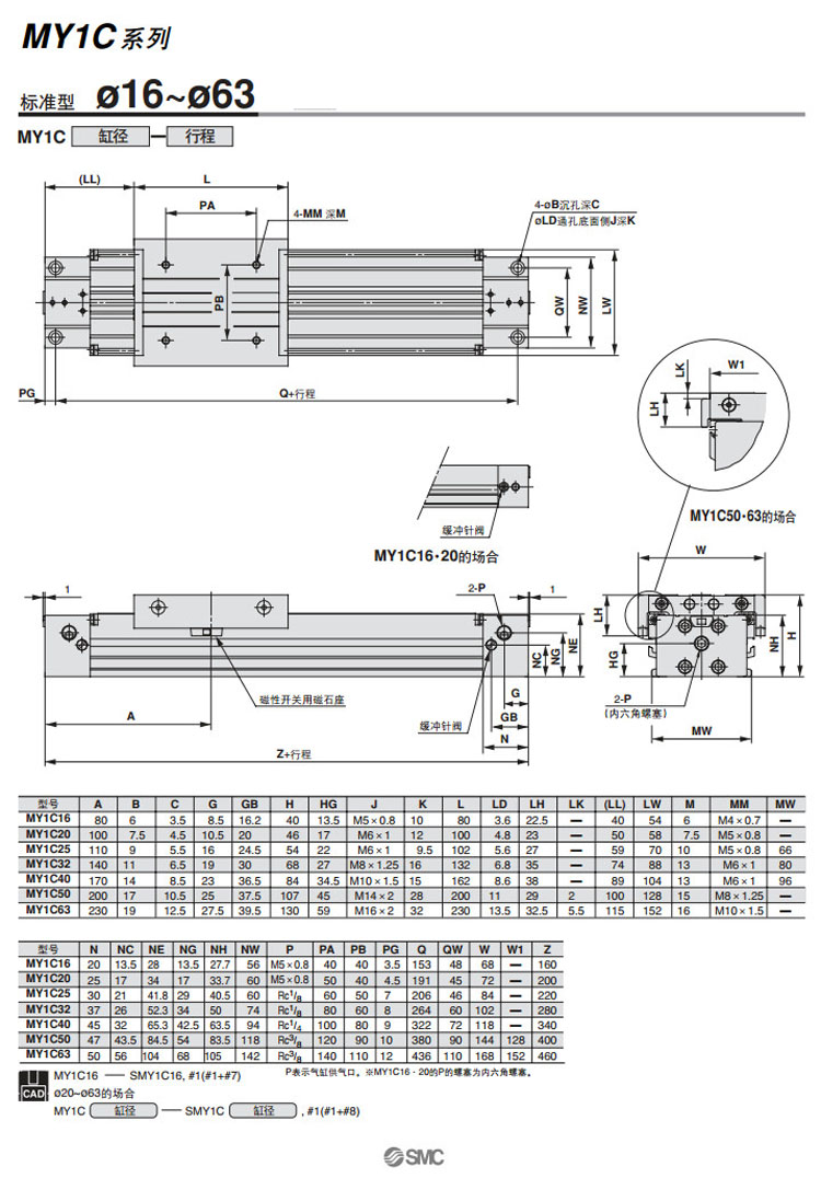MY1C50-1000,MY1C50-1200,MY1C50-1400,MY1C50-1600,MY1C50-1800,MY1C50-2000,