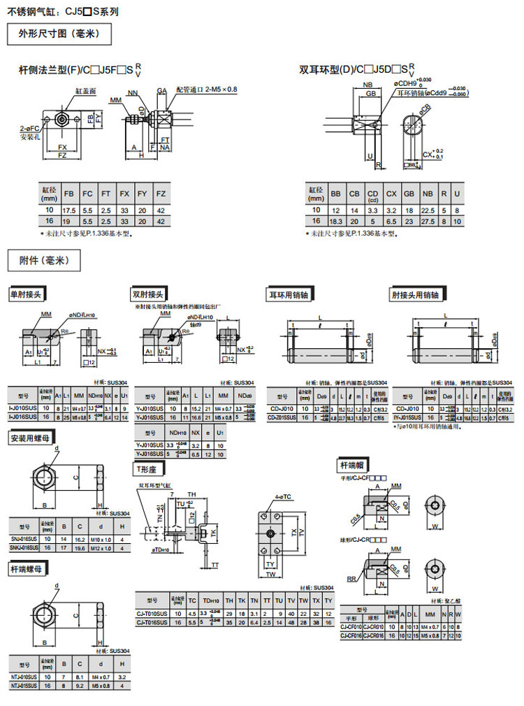 CJ5B10S,CJ5L10S,CJ5F10S,CJ5D10S,CDJ5B10S,CDJ5L10S,CDJ5F10S,CDJ5D10S,CJ5B10SR-15,SMC不銹鋼氣缸