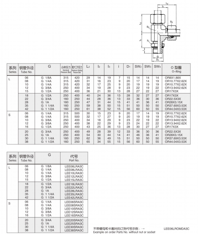 LEE06LRA3C,LEE08LRA3C,LEE10LRA3C,LEE10SRA3C,LEE12SRA3C,LEE16SRA3C,直通可調向接頭 |