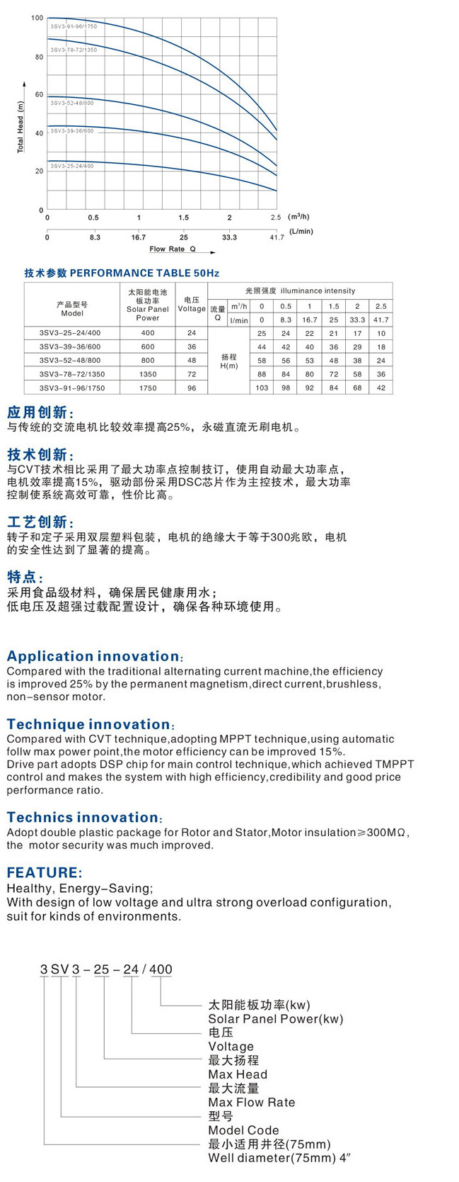 3SV3-25-24/400,3SV3-39-36/600,3SV3-52-48/800,3SV3-78-72/1350,3SV3-91-96/1750,太陽能井用深井泵