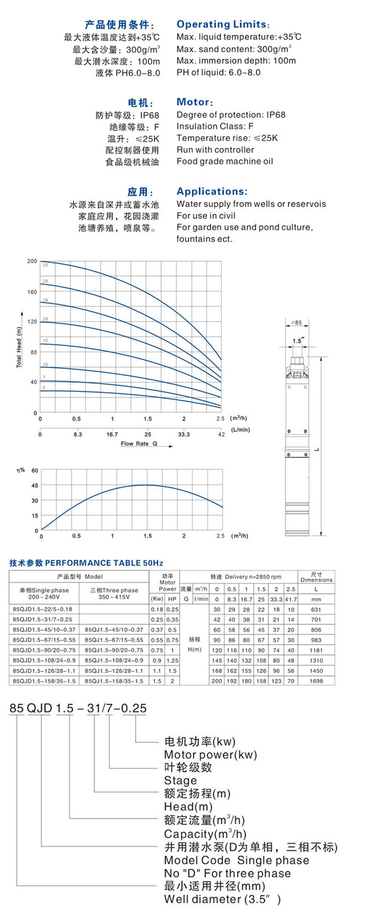 85QJD1.5-22/5-0.18,85QJD1.5-31/7-0.25,85QJD1.5-45/10-0.37,85QJD1.5-67/15-0.55,85QJD1.5-90/20-0.75,井用