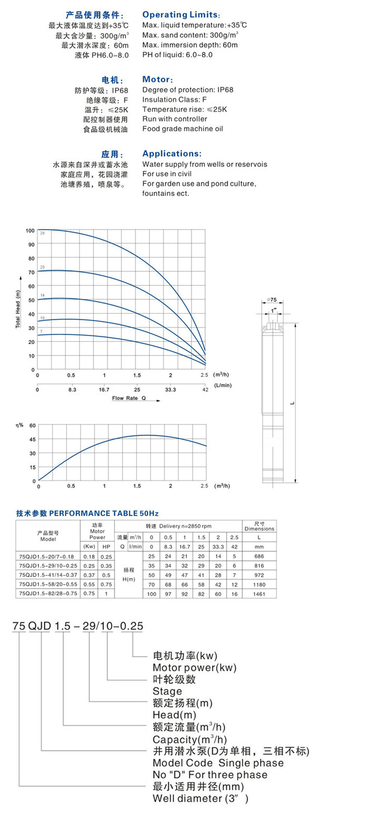 75QJD1.5-20/7-0.18,75QJD1.5-29/10-0.25,75QJD1.5-41/14-0.37,75QJD1.5-58/20-0.55,75QJD1.5-82/28-0.75