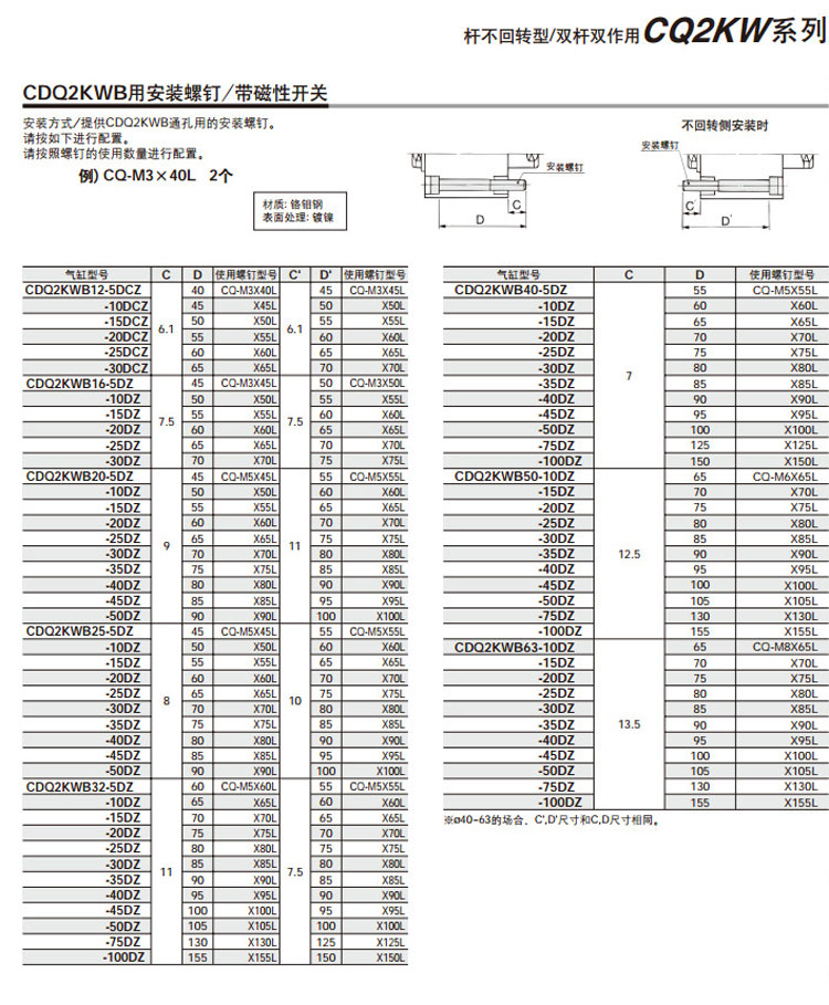 CDQ2KWG63-75D,CDQ2KWG63-100D,CDQ2KWG50-75D,CDQ2KWG50-100D,CDQ2KWG40-75D,CDQ2KWG40-100D,CDQ2KWD12-5D,CDQ2KWD12-10D,