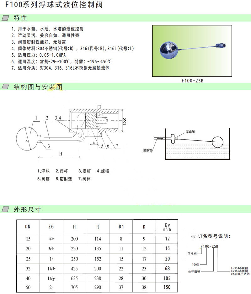 F100-15B,F100-20B,F100-25R,F100-32R,F100-40L,F100-50L,液位控制閥