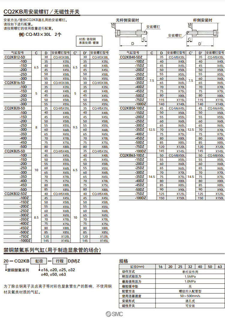 CQ2KG63-75,CQ2KG63-100,CQ2KD12-5,CQ2KD12-10,CQ2KD12-15,CQ2KD12-20,CQ2KD12-25,CQ2KD12-30,CQ2KD16-5,CQ2KD16-10,