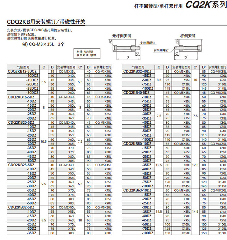 CDQ2KG63-75,CDQ2KG63-100,CDQ2KG50-75,CDQ2KG50-100,CDQ2KG40-75,CDQ2KG40-100,CDQ2KD12-5,CDQ2KD12-10,