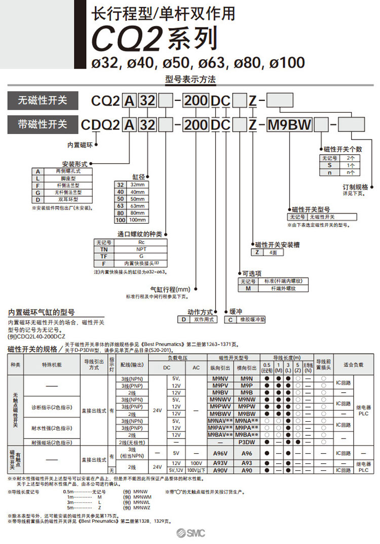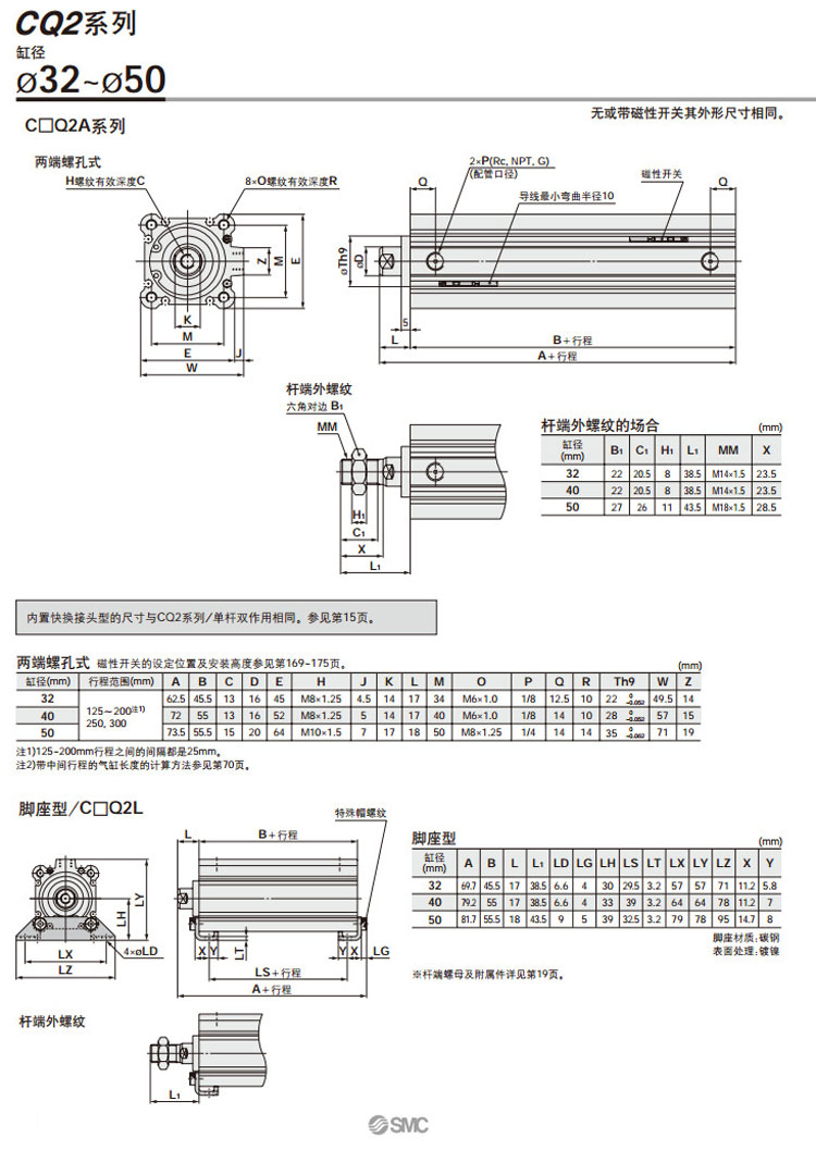 CQ2A32-125,CQ2A32-150,CQ2A32-175,CQ2A32-200,CQ2A32-250,CQ2A32-300,CQ2L32-125,CQ2L32-150,CQ2L32-175,