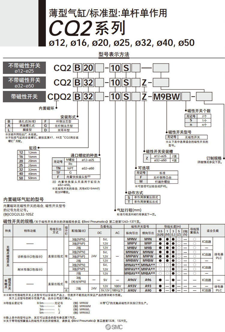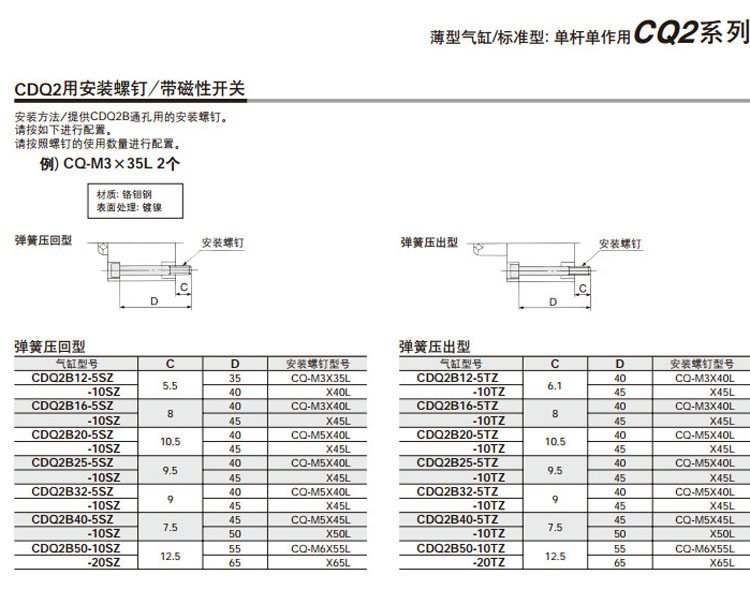CQ2B12-5S,CQ2B16-5S,CQ2B20-5S,CQ2B25-5S,CQ2B32-5S,CQ2B40-5S,CQ2B50-10S,CQ2L12-5S,CQ2L16-5S,CQ2L20-5S,