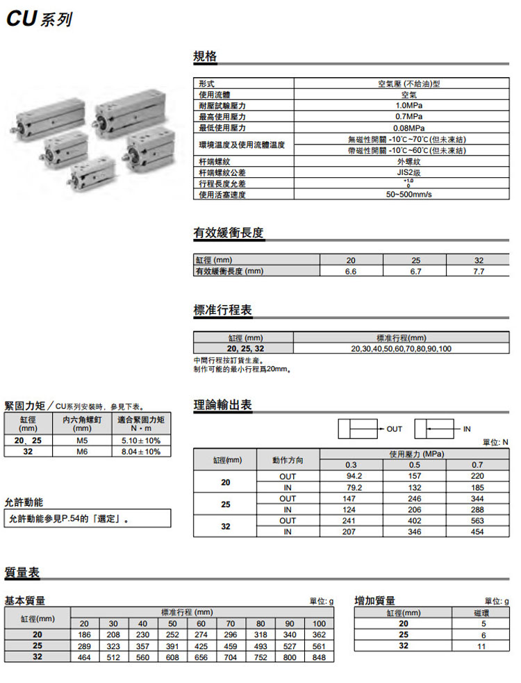CU20-20A,CU25-20A,CU32-20A,CDU20-20A,CDU25-20A,CDU32-20A,CU32TN-20A,CDU32TF-20A,SMC自由安裝型氣缸