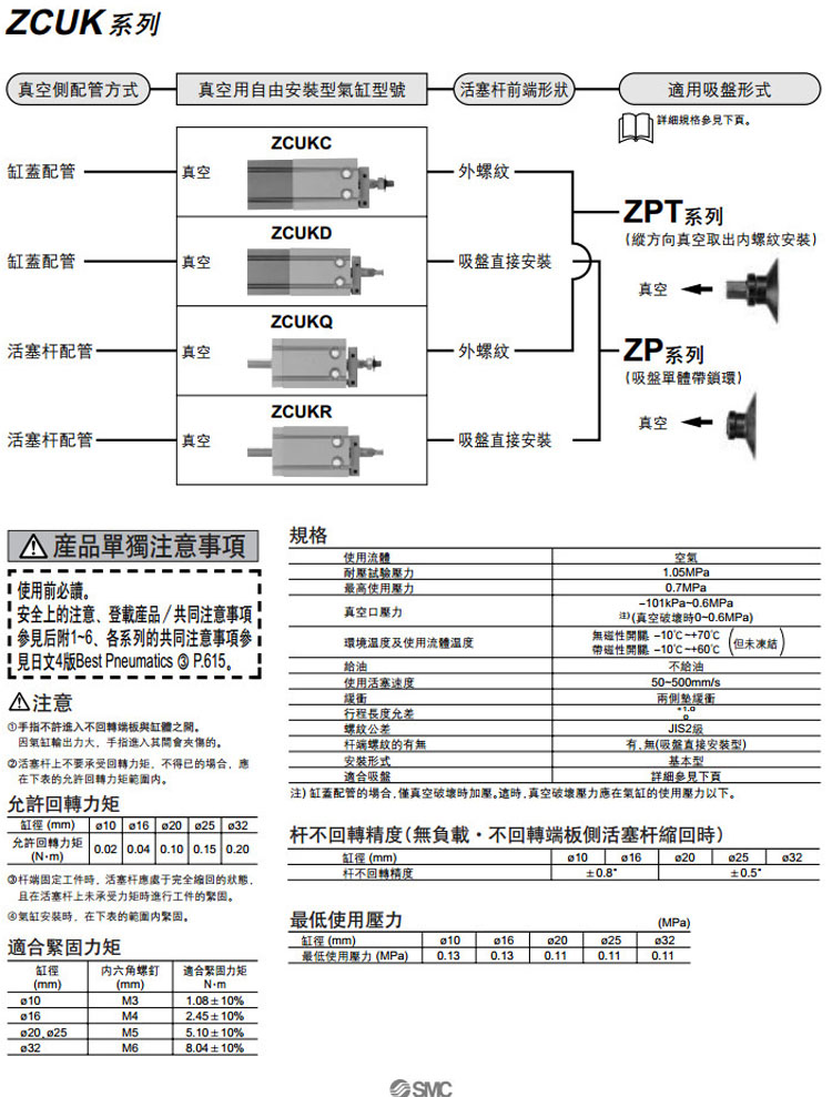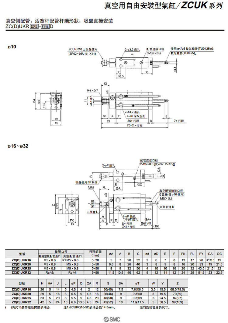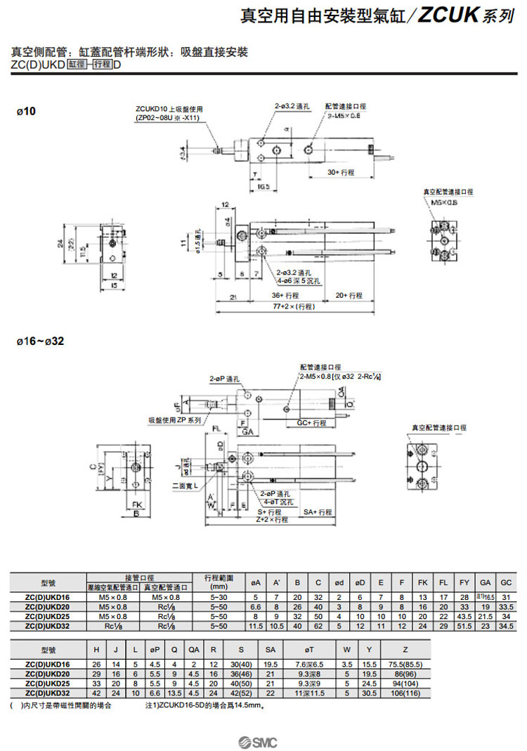ZCUKC,ZCUKD,ZCUKQ,ZCUKR,ZCDUKC,ZCDUKD,ZCDUKQ,ZCDUKR,ZCUKC10-5D,ZCDUKC10-5D,SMC自由安裝型氣缸