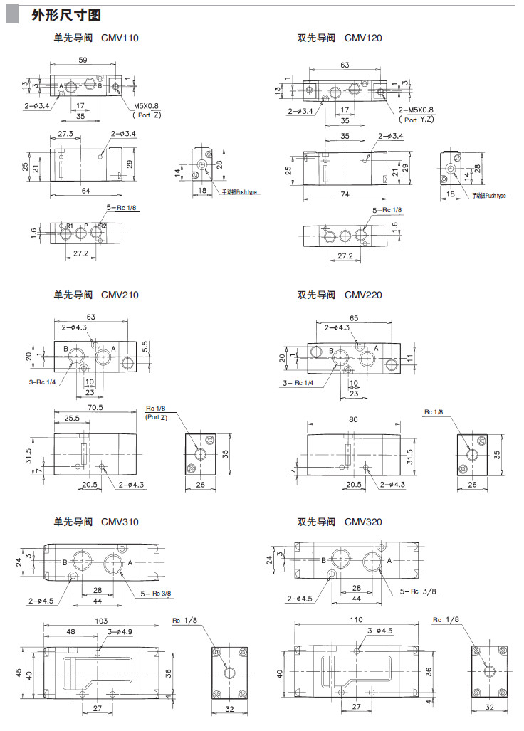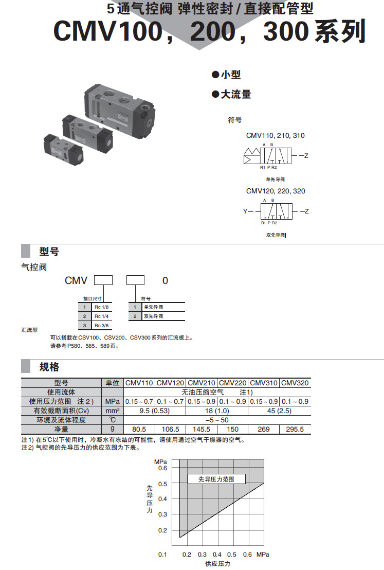 CMV110,CMV120,CMV210,CMV220,CMV310,CMV320,5通氣控閥