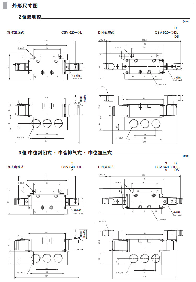 CSV610-1L,CSV620-2L,CSV640-1D,CSV650-2D,CSV630-4DL,CSV640-1DS,5通先導式電磁閥