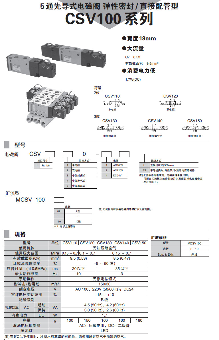 CSV110-1L,CSV120-2L,CSV130-4L,CSV140-1PS,CSV150-2PS,CSV110-4PS,5通先導(dǎo)式電磁閥