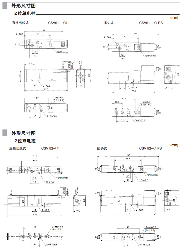 CSV51-1L,CSV52-2L,CSV53-4L,CSV54-1PS,CSV55-2PS,CSV51-4PS,5通先導(dǎo)式電磁閥