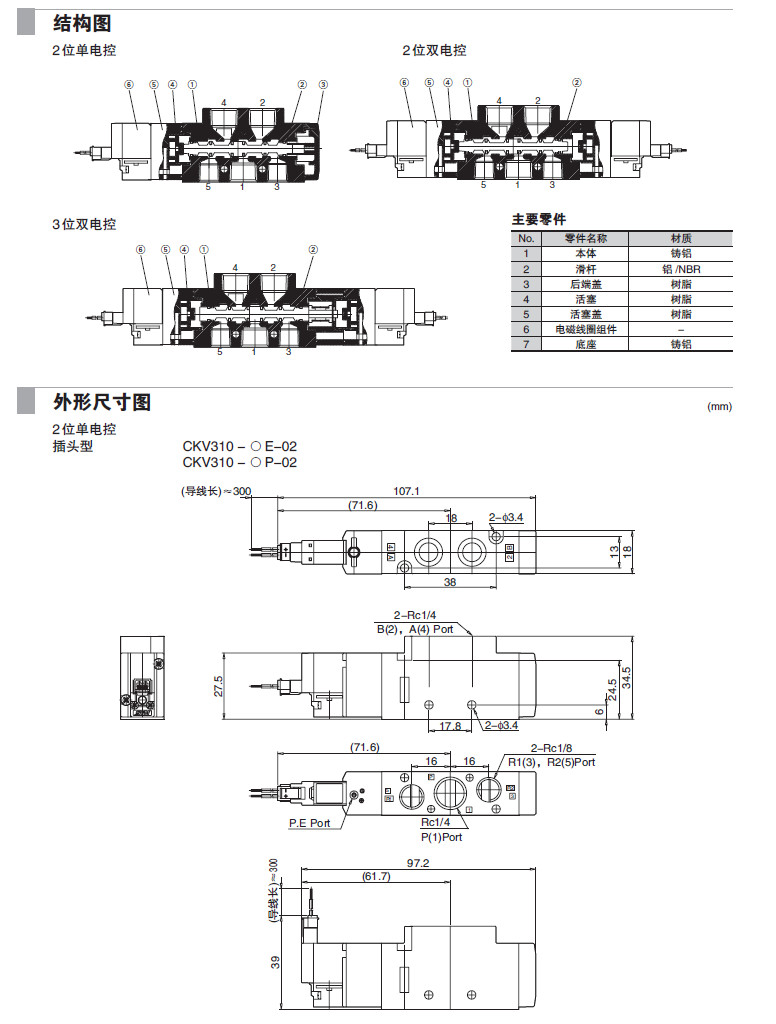 CKV310-1E,CKV320-2E,CKV330-4E,CKV340-4P,CKV350-1E,5通先導(dǎo)式電磁閥