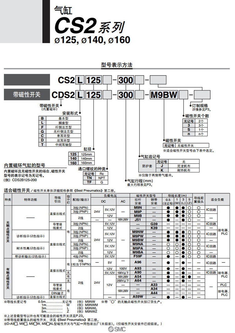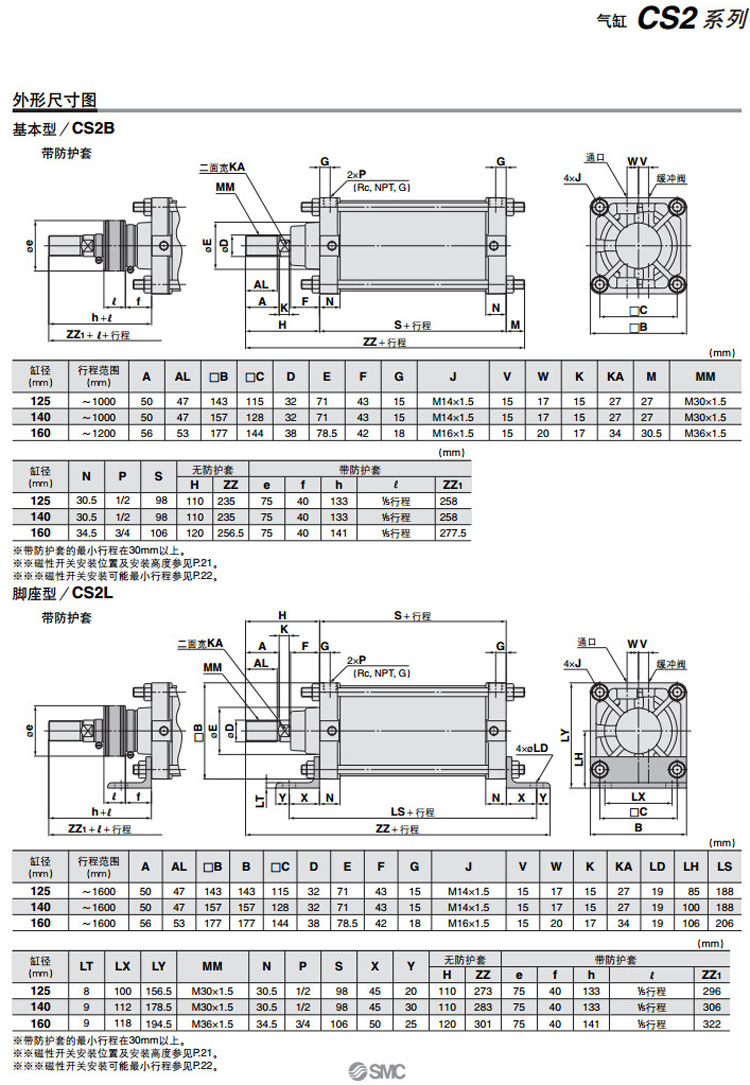 CS2B125-300,CS2L125-300,CS2F125-300,CS2G125-300,CS2C125-300,CS2D125-300,CS2T125-300,SMC低摩擦型氣缸
