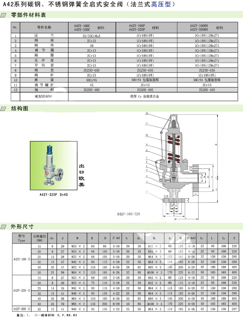 A42Y-160C,A42Y-400C,A42Y-160P,A42Y-320P,A42Y-160R8,高壓安全閥 |
