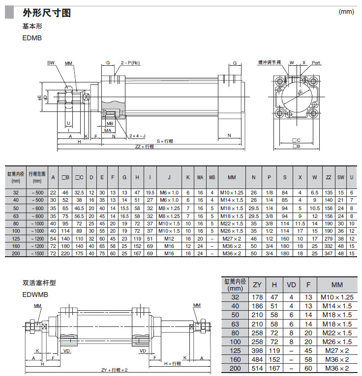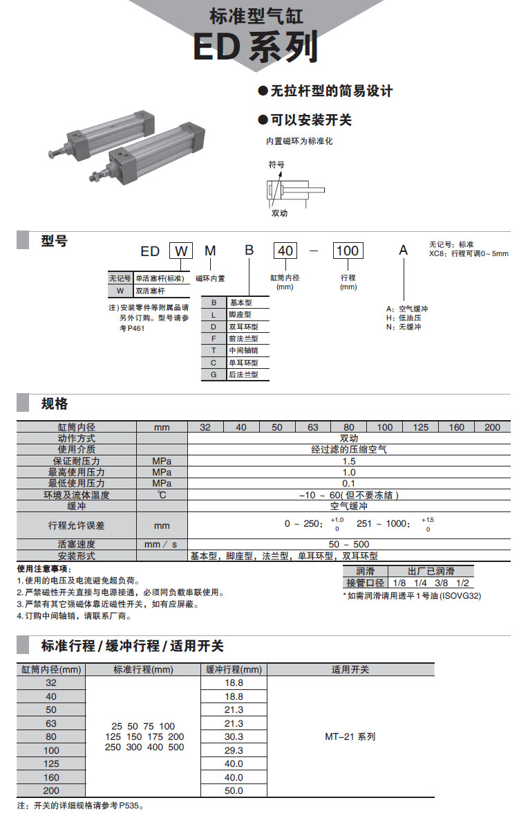 EDWML-80-25,EDWML-80-50,EDWML-80-75,EDWML-80-100,EDWML-80-125,EDWML-80-150,標(biāo)準(zhǔn)型氣缸