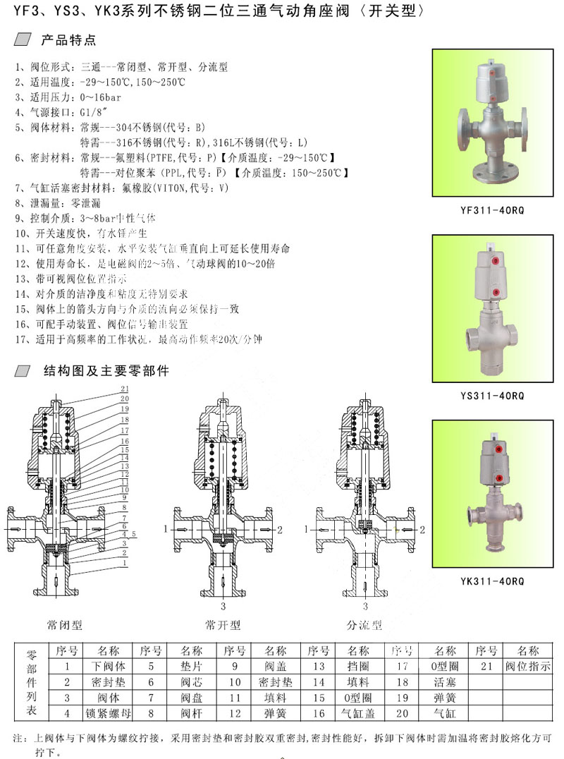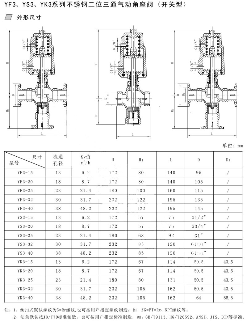 YF3-15,YF3-20,YS3-25,YS3-32,YK3-32,YK3-40,氣動角座閥