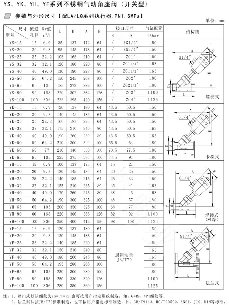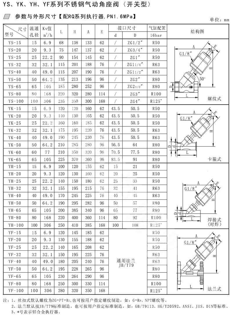 YS-15,YS-20,YK-25,YK-32,YH-40,YH-50,YF-65,YF-80,不銹鋼Y型角座氣動閥