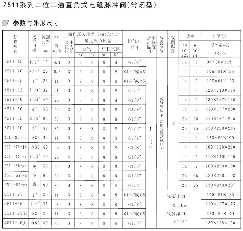 Z511-15,Z511-20,Z511-40-jt,Z511-40-ym,Q511-25,Q511-65,直角式脈沖電磁閥 |