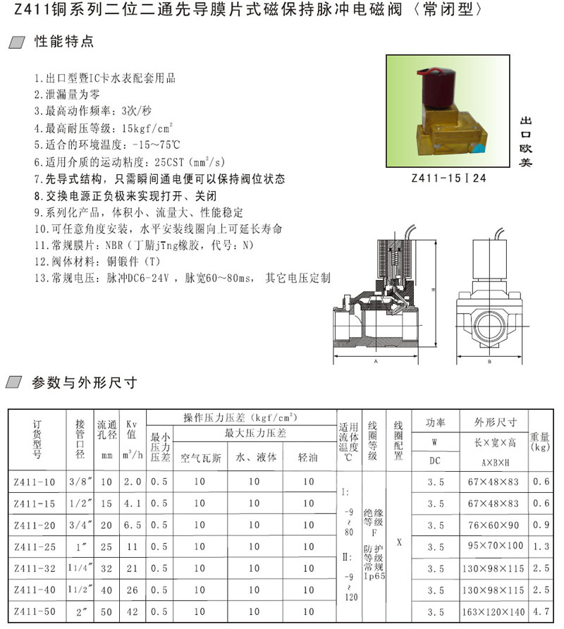 Z411-10,Z411-15,Z411-20,Z411-25,Z411-32,Z411-40,Z411-50,先導膜片式磁保持脈沖電磁閥 |