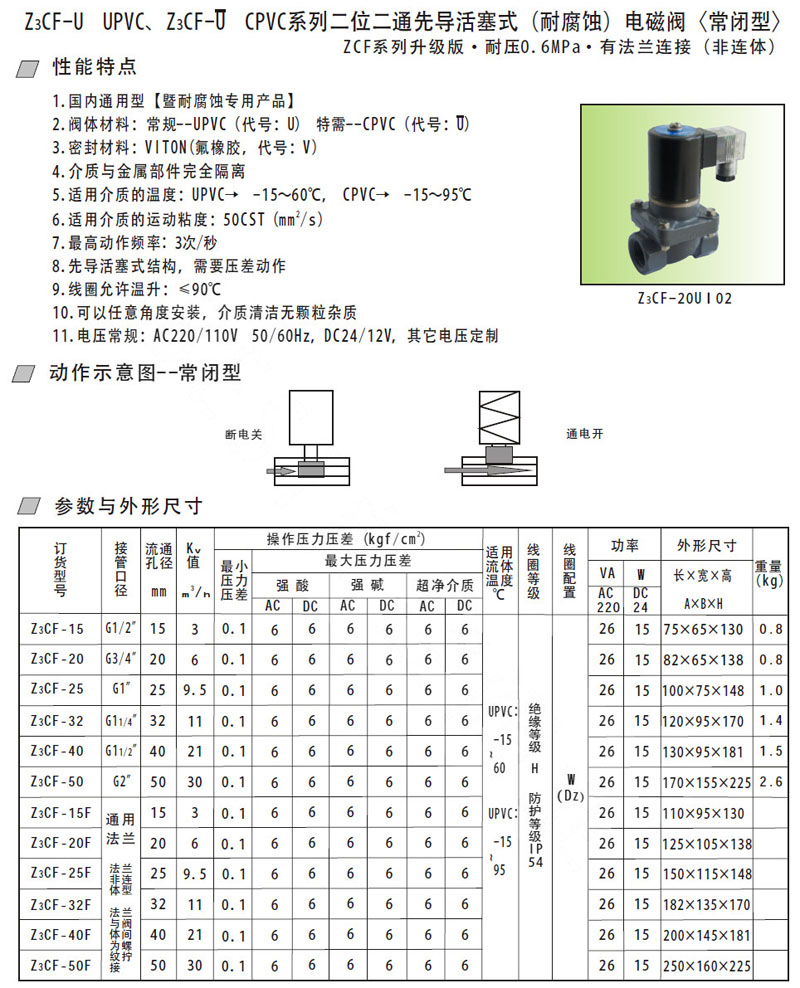 Z3CF-15,Z3CF-20,Z3CF-25,Z3CF-32F,Z3CF-40F,Z3CF-50F,先導(dǎo)活塞式耐腐電磁閥
