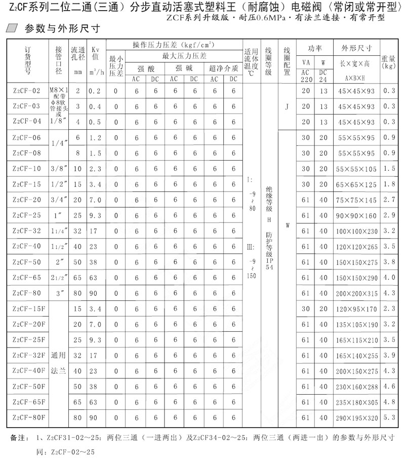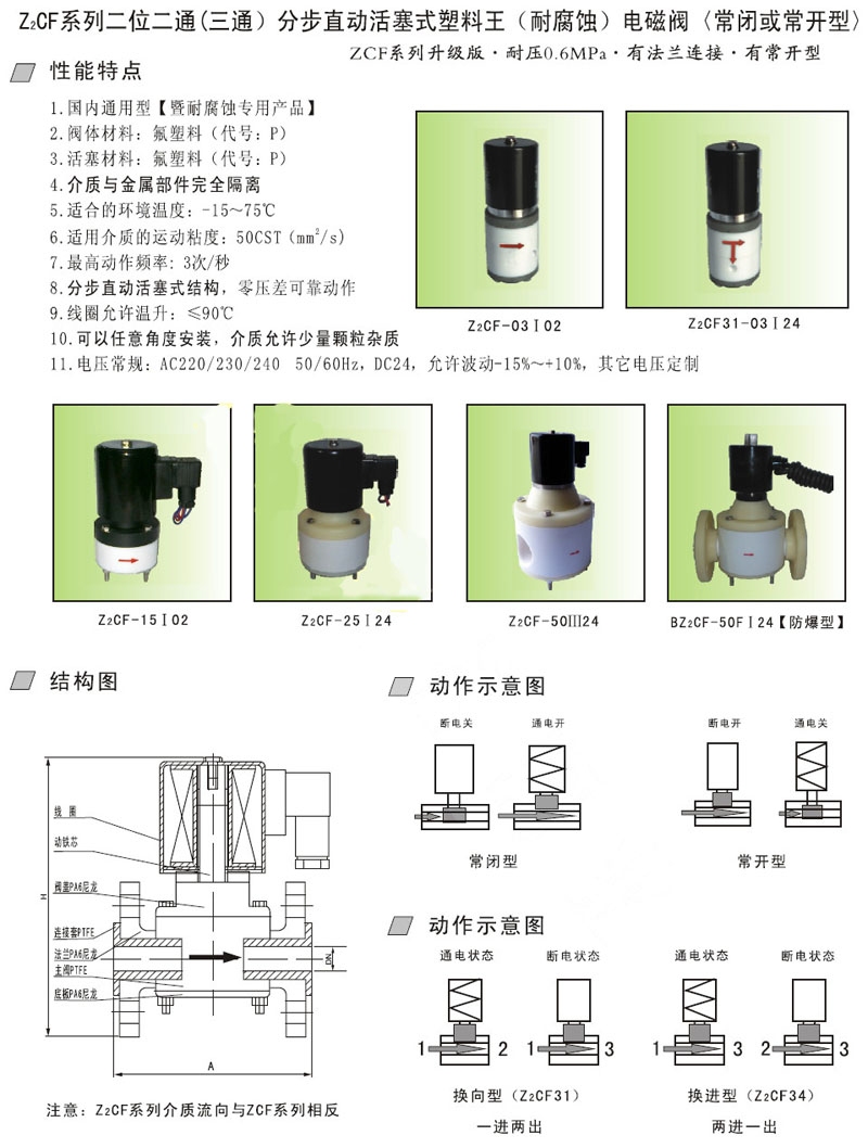 Z2CF-02,Z2CF-03,Z2CF-04,Z2CF-50F,Z2CF-65F,Z2CF-80F,直動(dòng)式塑料王耐腐電磁閥