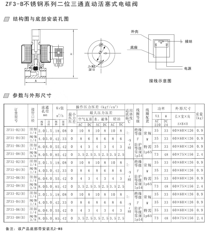 ZF31-02,ZF31-04,ZF32-02,ZF32-04,ZF33-06,ZF33-08,直動(dòng)活塞式電磁閥