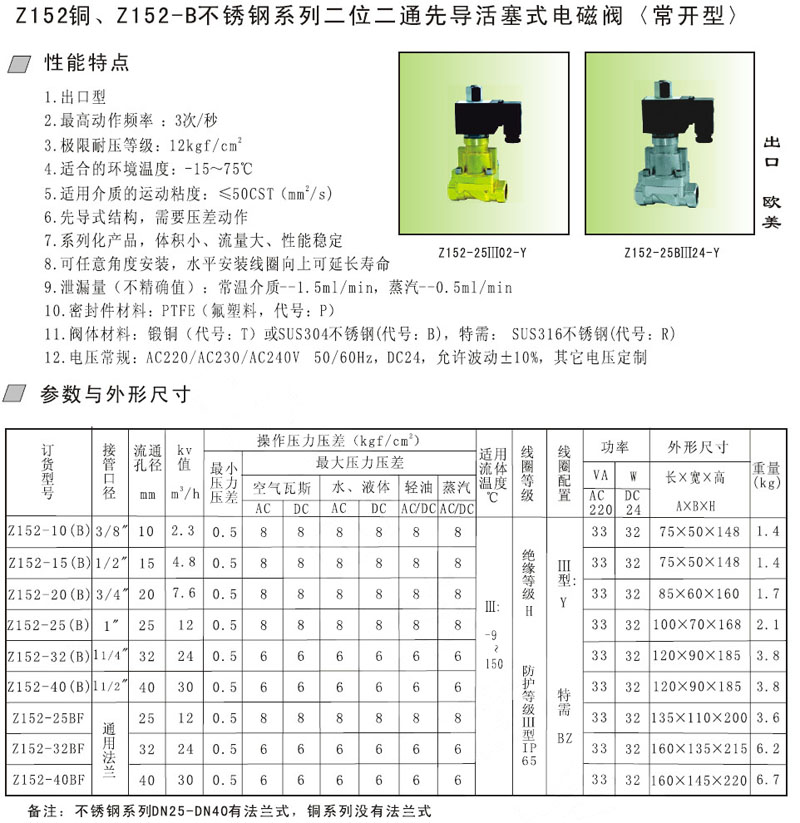 Z152-10,Z152-15,Z152-20,Z152-25,Z152-32,Z152-40,先導(dǎo)活塞式電磁閥