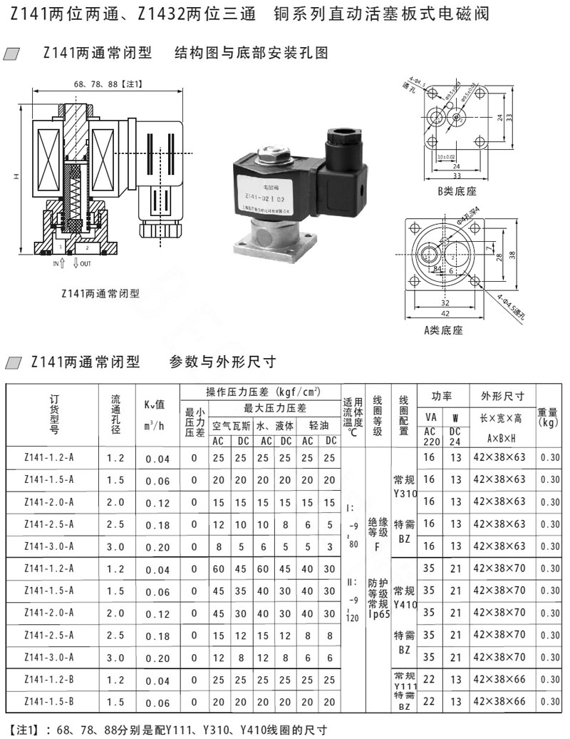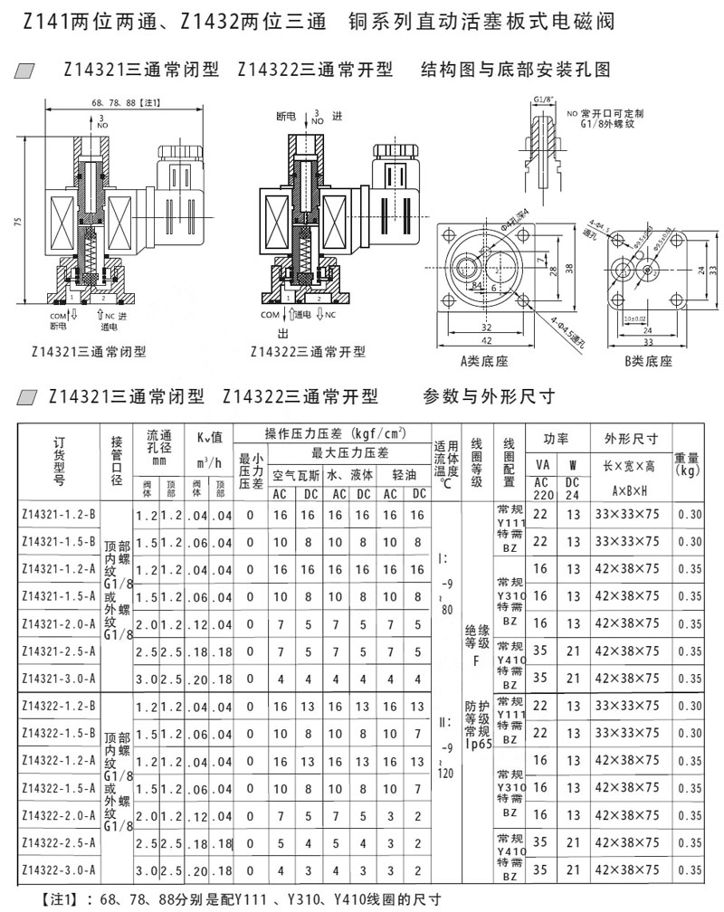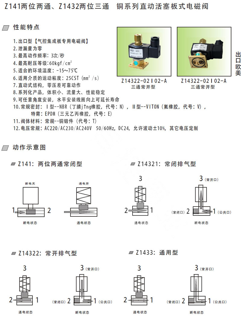 Z14321-1.2-B,Z14322-1.5-B,Z1433-1.2-B,Z141-1.2-A,Z14321-2.5-A,直動(dòng)活塞板式電磁閥