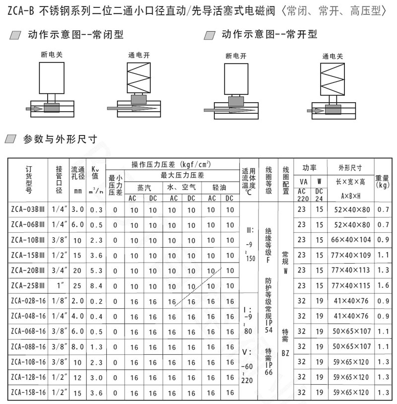 ZCA-03BIII,ZCA-06BIII,ZCA-10BIII,ZCA-12B-16,ZCA-15B-16,小口徑活塞式電磁閥