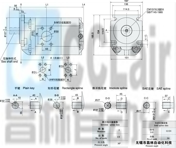 : SAE花鍵 H: 矩形花鍵 X: 漸開(kāi)線(xiàn)花鍵