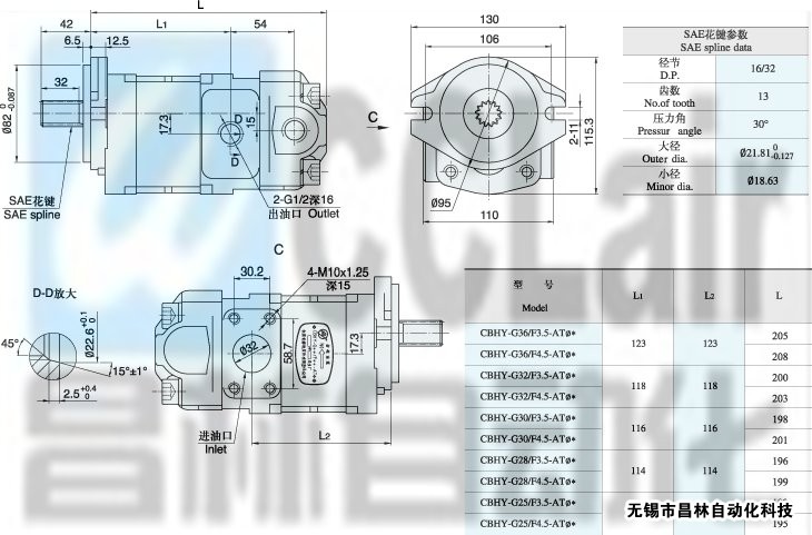 注:前泵出油口螺紋為G3/4的,其產(chǎn)品型號(hào)為CBHYA-G**/F**-AT
