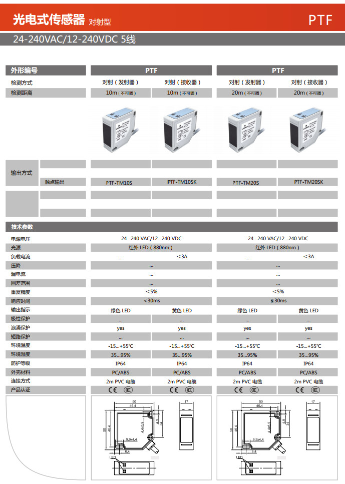 PTF-TM10S,PTF-TM10SK,PTF-TM20S,PTF-TM20SK,光電式傳感器