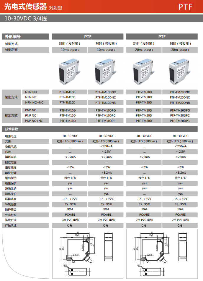 PTF-TM10D,PTF-TM10DNO,PTF-TM10DNC,PTF-TM10DNR,PTF-TM20D,PTF-TM20DNO,PTF-TM20DNC,光電式傳感器